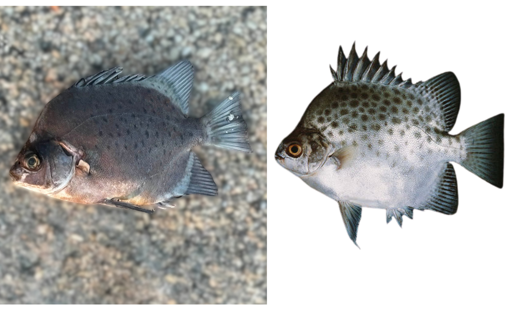 Fish from Dolomite beach(left) compared to Scatophagus argus specimen (right)