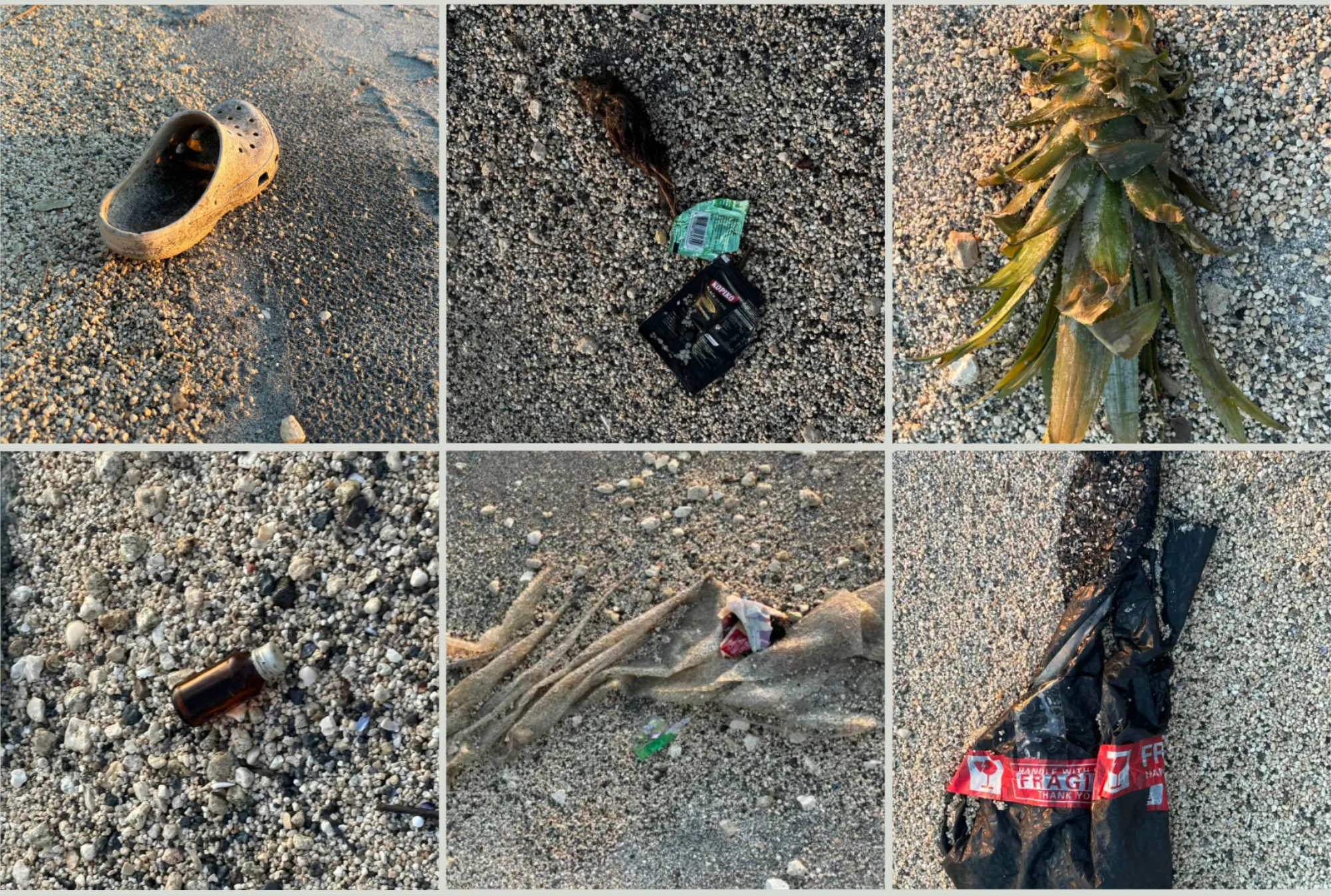 Littered all over the shore were pieces of garbage, whispers of the previous guests. Notably: a baby sized croc, weathered and worn. A sachet of shampoo and coffee, the head of a pineapple leftover from a picnic, bubble wrap pushed into a natural shape by the waves, a medicine bottle and the skin from a claimed lazada package.